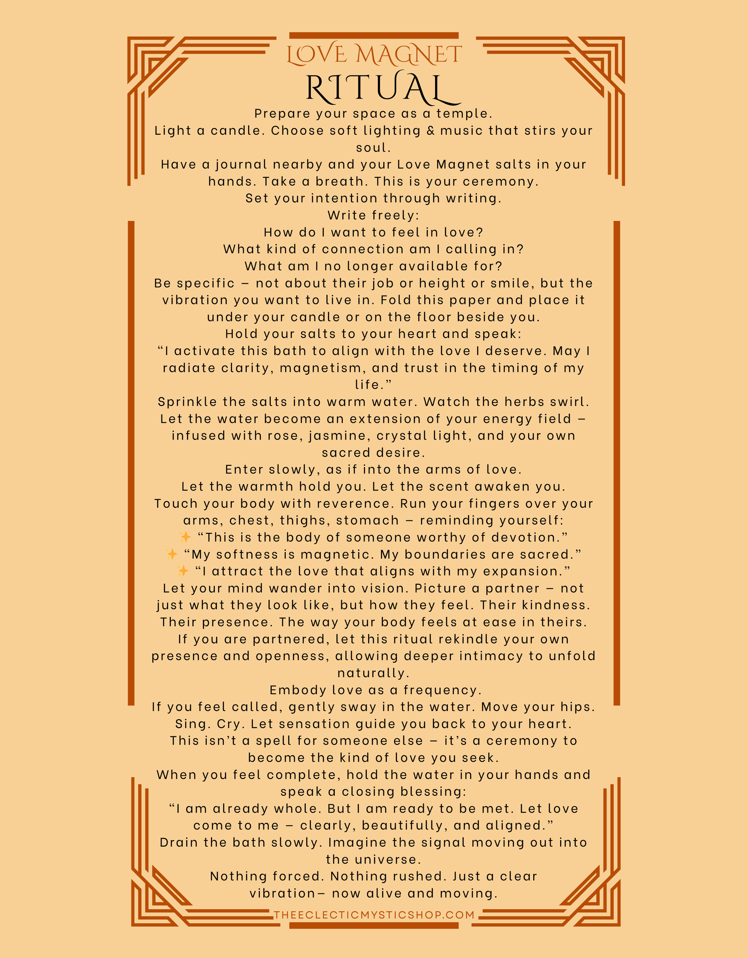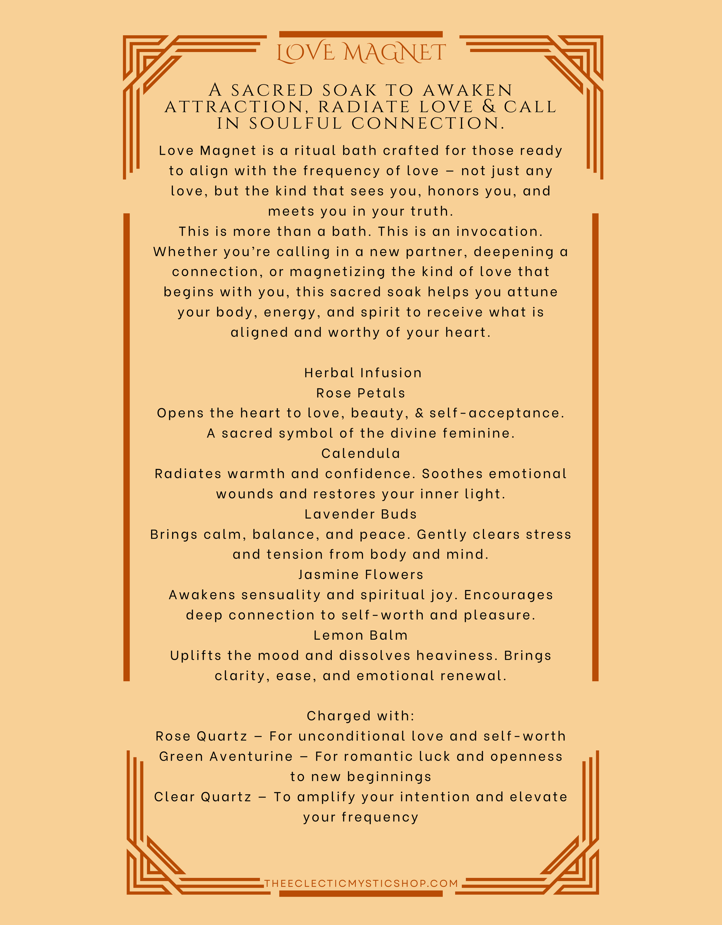 Love Magnet Ritual Bath Soak is a sacred soak to awaken attraction, radiate love, and call in soulful connection.